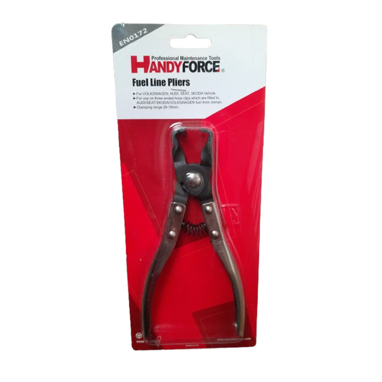 انبر بست شلنگ بنزین هندی کرافت HANDY KRAFT کد:EN0172 ساخت کشور تایوان 🇹🇼 بسیار باکیفیت سایز ۱۸-۲۸ میلیمتر، کارایی: فشردن بست شلنگ های سوخت خودرو، دارای فکهای دوتایی، دستگیره ارگونومیک.(این محصول را با قیمت مناسب از ابزار تهران تهیه کنید)